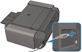 Povežite tiskalnik in računalnik s kablom USB, kot je prikazano na spodnji sliki. Vrata USB so na hrbtni strani tiskalnika.