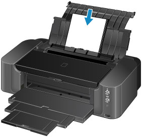 Jei spausdinate ant popieriaus, kurio formatas yra nuo 10 x 15 cm (4 x 6 col.) iki 25 x 30 cm (10 x 12 col.) arba A3+, popierių dėkite į galinį dėklą. Jei formatas ir laikmenos rūšis sutampa, galima dėti du arba daugiau lapų iš karto ir spausdinti nepertraukiamai. (Tam tikro formato ir laikmenos rūšies popieriaus lapus galima dėti tik po vieną.)