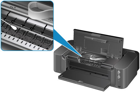 Jei nuvalius apatinę plokštę problemos išspręsti nepavyko, gali būti, kad spausdintuvo viduje esama nešvarių iškyšų. Medvilniniu tamponėliu ar kita panašia priemone nuvalykite nuo jų rašalą.