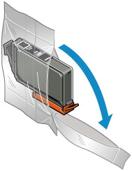 Odstranite oranžni zaščitni pokrovček (B) s spodnjega dela črnilnega vložka, kot je prikazano na spodnji sliki.