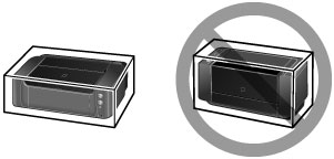 - Ko tiskalnik shranite, škatle ne postavite na stranici ali obrnjeno na glavo. To lahko povzroči puščanje črnila med prenašanjem in poškoduje tiskalnik.