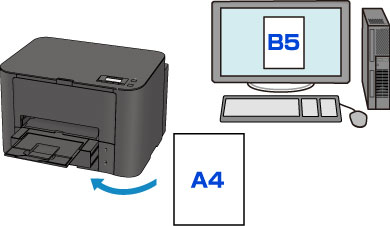 Ad esempio, quando l'impostazione carta per la stampa è B5 e le informazioni della carta del cassetto registrate nella stampante sono impostate su A4, la stampante avvia la stampa con B5 sulla carta caricata nel cassetto.