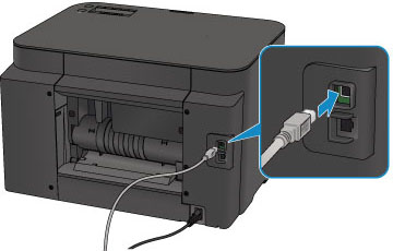 Savienojiet printeri un datoru, izmantojot USB kabeli, kā parādīts ilustrācijā. USB ports atrodas printera aizmugurē.