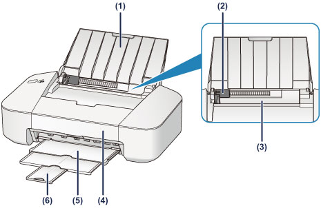 - Atidarykite, jei reikia įdėti popierių į galinį dėklą.