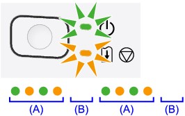 Įvykus klaidai, mirksi oranžinė lemputė Įspėjimas (Alarm), o kompiuterio ekrane rodomas palaikymo kodas (klaidos numeris). Įvykus tam tikroms klaidoms, pakaitomis mirksi lemputės MAITINIMAS (POWER) ir Įspėjimas (Alarm). Patikrinkite lempučių būseną ir pranešimą, tada imkitės reikiamų klaidos šalinimo veiksmų.