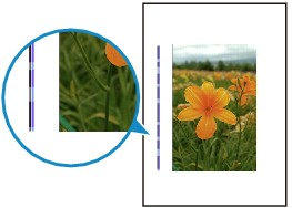 Če je velikost naloženega papirja večja od velikosti strani, ki ste jo določili, se bodo lahko na robovih natisnile navpične črte.