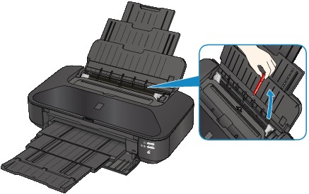 Kad ievietojat papīru, ievietojiet to ar apdrukājamo pusi uz AUGŠU un bīdiet papīra vadotnes tā, lai pielīdzinātu abām papīra malām.