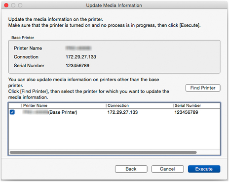 Viene visualizzata la finestra di dialogo Aggiornamento informazioni sulla carta (Update Media Information).