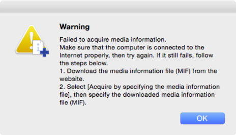 Se viene visualizzato il seguente messaggio, non è possibile scaricare da Internet il file delle informazioni sul supporto.