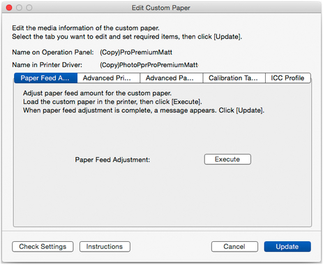 Per migliorare la qualità di stampa e l'alimentazione di carta non originale Canon o non controllata per l'alimentazione Canon, aggiungere e modificare la carta personalizzata.