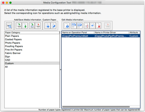 Il file delle informazioni sul supporto (file .am1x) per la carta personalizzata viene salvato.