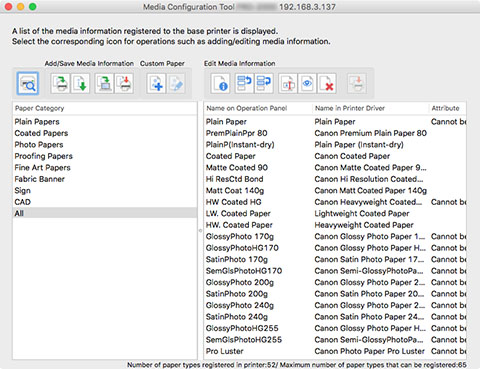 Consente di modificare la stampante per la quale si desidera modificare le informazioni sul supporto.