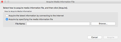 Selecione Adquirir especificando o arquivo de informações de mídia (Acquire by specifying the media information file) e clique no botão Procurar (Browse).