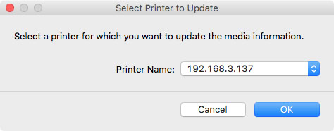 Se a seguinte caixa de diálogo for exibida, selecione a impressora cujas informações de mídia estão sendo atualizadas e clique no botão OK.