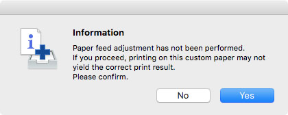 - Se você estiver usando a função de detecção do tipo de papel, o papel personalizado para o qual o Ajuste da alimentação de papel não foi executado pode não ser direcionado para detectar o tipo de papel.