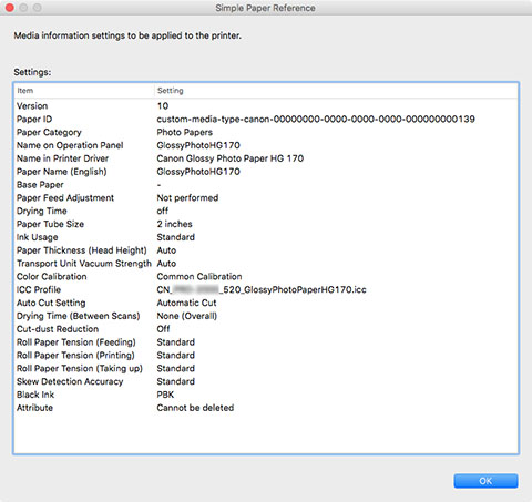 Информация, которая появится в диалоговом окне Простой ориентир на бумагу (Simple Paper Reference), — это информация о носителе, отправленная с помощью Media Configuration Tool. После обновления информации с помощью Media Configuration Tool проверьте на панели управления принтера значения информации о носителе, которые были изменены в панели управления принтера.