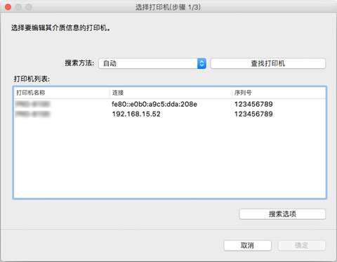 选择要注册介质信息的打印机.