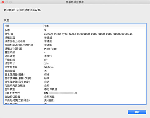 出现在简单的纸张参考对话框中的信息是Media Configuration Tool发送的介质信息。 使用Media Configuration Tool更新介质信息后,请检查打印机操作面板来验证已在打印机操作面板中更改的介质信息值。