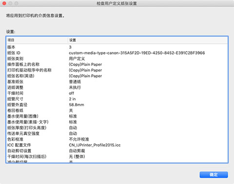 已编辑的用户定义纸张介质信息会应用至打印机。