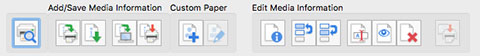 - Grupo de botões Ad/salvar info míd (Add/Save Media Information)
