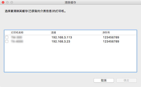 删除从选择了复选标记的打印机获取的介质信息的缓存。