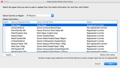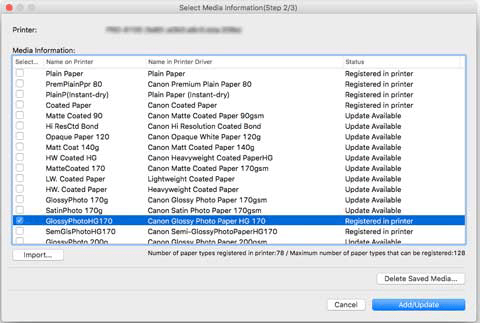 For details, search for and refer to the "Updating Media Information in Printer Driver" page from the home page of the Online Manual for your model.