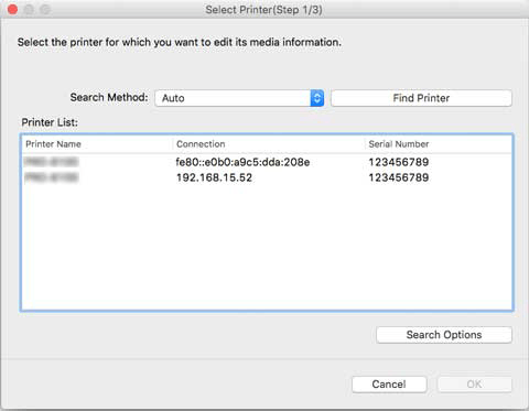 If the following dialog box appears, select the printer that you are updating the media information of, and then click the OK button.