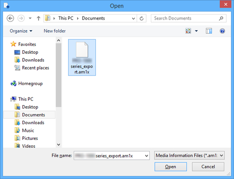 Select the media information file (.am1x file), and click the Open button.