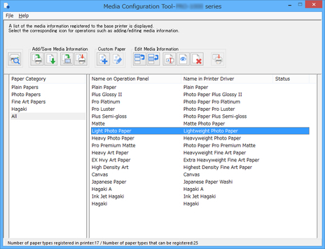 If you want to apply the same media information to another printer, make the other printer the base printer and edit or copy the media information.