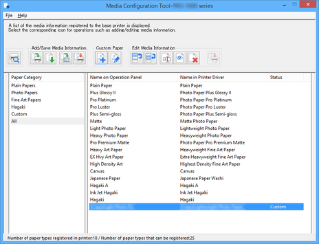 For details on the procedure for adding custom paper to the printer, see "Adding Custom Paper."