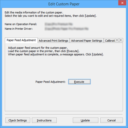 For details, see "Updating Media Information in Printer Driver" for your model from the Home of the Online Manual.