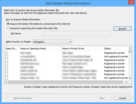 For details, search for and refer to the "Updating Media Information in Printer Driver" page from the home page of the Online Manual for your model.