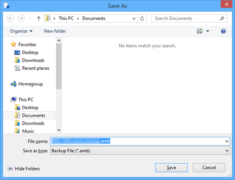 Specify the folder where you want to save the media information backup file, and click the Save button.