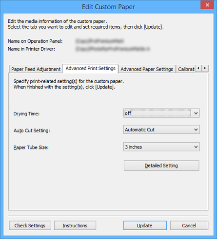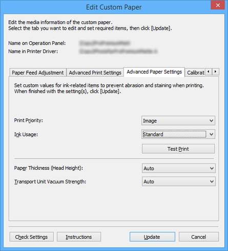 You can edit the media information for custom paper in the Edit Custom Paper dialog box.