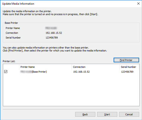 Sfogliare "Modifica della stampante di base" e riselezionare la stampante di base per aggiungere o modificare le informazioni sul supporto.