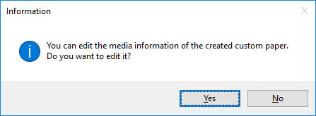 Fare clic sul pulsante Sì (Yes) per visualizzare la finestra di dialogo Modifica carta personalizzata (Edit Custom Paper). Effettuare la procedura dal passaggio 3 di "Modifica della carta personalizzata".