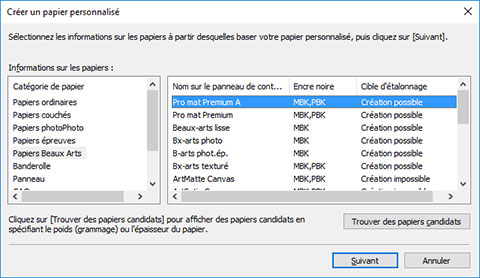 Pour ajouter un nouveau papier personnalisé sur une imprimante, sélectionnez d'abord les informations sur les papiers qui lui serviront de base.