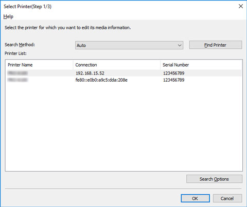 프린터 찾기(Find Printer) 버튼을 클릭하면 기준 프린터 이외의 프린터가 표시됩니다. 기준 프린터와 동시에 용지 정보를 업데이트할 다른 프린터가 있는 경우 이 확인란을 선택합니다.