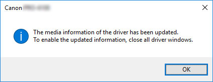Atualize as informações de mídia na tela Propriedades do driver da impressora.