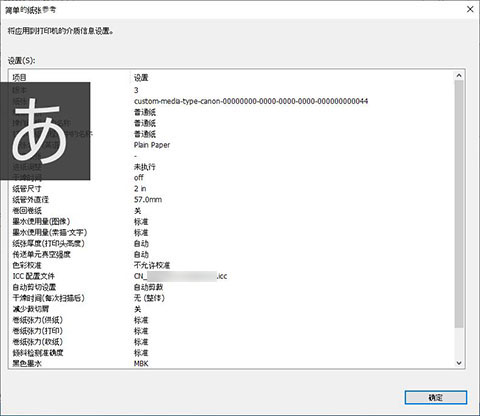 出现在简单的纸张参考对话框中的信息是Media Configuration Tool发送的介质信息。 使用Media Configuration Tool更新介质信息后,请检查打印机操作面板来验证已在打印机操作面板中更改的介质信息值。