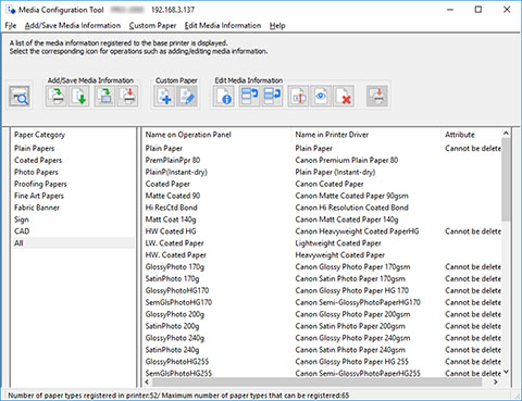 메인 화면의 왼쪽 아래에 표시된 등록할 수 있는 용지 종류의 최대 수(Maximum number of paper types that can be saved)가 초과된 경우에는 프린터에 용지 정보를 추가할 수 없습니다.