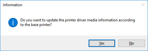 용지 정보 업데이트가 끝나면 "드라이버의 용지 정보가 업데이트되었습니다.(The media information of the driver has been updated.)" 대화 상자가 나타납니다. 대화 상자를 닫으려면 확인(OK)을 클릭합니다.