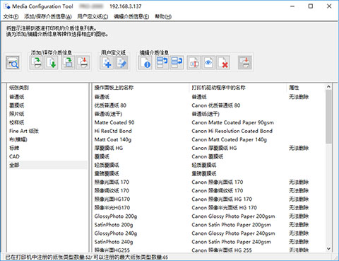 如果超过主屏幕左下方显示的可以注册的最大纸张类型数量,则无法将介质信息添加到打印机。