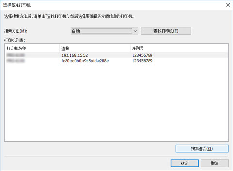 如果Media Configuration Tool中没有缓存,启动时会搜索打印机并且会出现选择基准打印机对话框。
