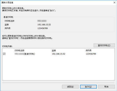单击查找打印机按钮以显示基准打印机之外的打印机。 如果更新基准打印机的介质信息时还要一并更新其他打印机的这些信息,请选中此打印机的复选框。