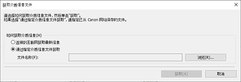 使用连接到互联网的计算机,从Canon网站获取介质信息文件。