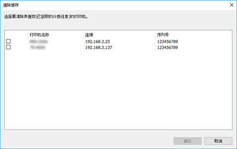 删除从选择了复选标记的打印机获取的介质信息的缓存。