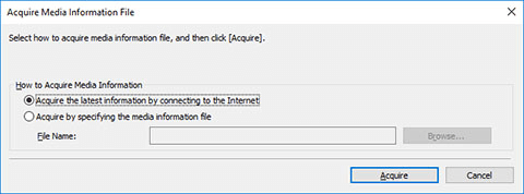인터넷에 연결하여 최신 정보 가져오기(Acquire the latest information from the internet)를 선택한 다음 가져오기(Acquire) 버튼을 클릭합니다.