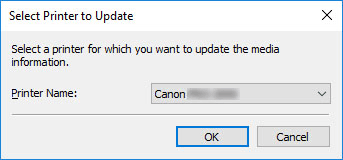다음 대화 상자가 나타나면 용지 정보를 업데이트할 프린터를 선택한 다음 확인(OK) 버튼을 클릭하십시오.