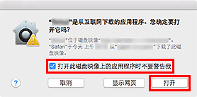 当打开此磁盘映像上的应用程序时不要警告我选项可用时,选择此项可以防止警告信息出现。